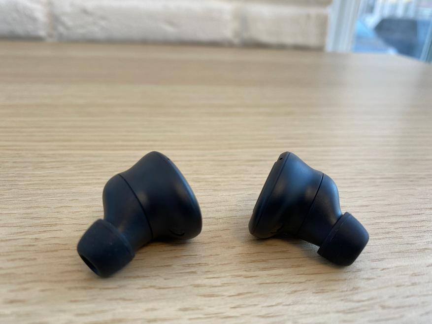 Если говорить о наушниках, то хочу начать с того, что они отлично (даже очень) держатся в ушах. Это, конечно, всё сугубо индивидуально, но в моём случае всё хорошо. А благодаря уровню защиты от воды IPX4 в этих наушниках можно без проблем заниматься спортом.