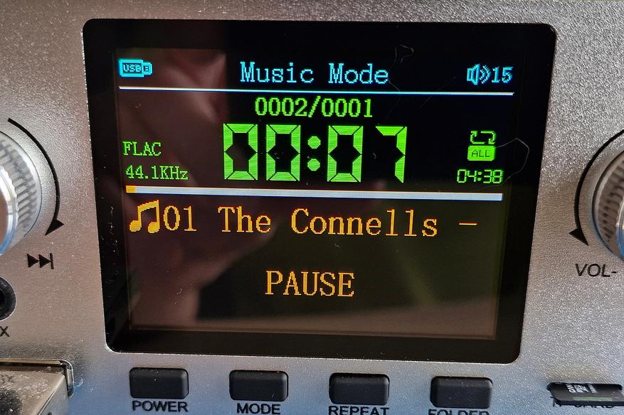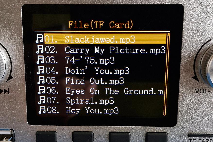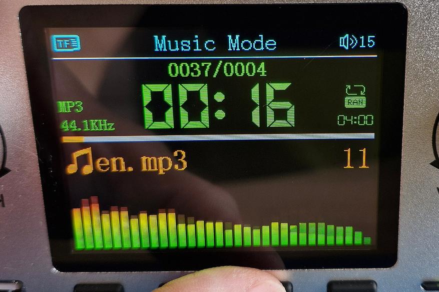 Для управления режимом воспроизведения есть корректно работающий режим случайного проигрывания (Random). Выход звука идет на линейный выход и I2S.