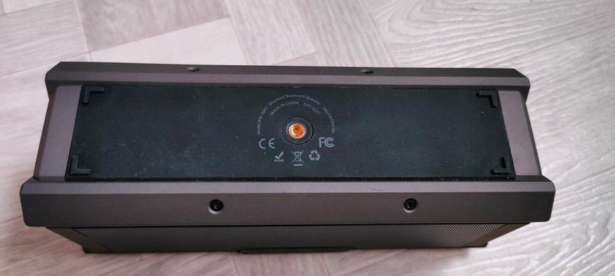 Донная сторона снабжена резиновыми ножками — колонка не скользит на гладких поверхностях. Есть резьба 1/4 под установку на штатив — нестандартное, но полезное решение для пикников или домашних вечеринок.