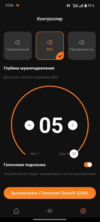 Подключаются наушники через Bluetooth по названию модели. Модель поддерживает кодеки AAC и SBC. В прошлой модели AAC не было. Правильнее всего сразу установить официальное приложение. Разумеется, есть возможность выбирать типы звучания, мониторить процент заряда, обновлять прошивку, настраивать автоматическое отключение. Дополнительно к функциональности младшей модели добавился пункт настраиваемого гибридного активного шумоподавления. Это отличное решение, особенно для таких наушников, чтобы можно было полностью отвлечься от окружающих звуков. Эффективность работы шумодава можно регулировать по шкале от минимума до максимума. Шумодав хорошо отсекает внешние звуки. Особенно это важно, если нас окружают, например строительные монотонные шумы. Резкие высокие звуки могут прорваться, но в основном шумодав отрабатывает корректно. Режим прозрачности отлично подходит для того, чтобы не пропустить обращение коллег, но при этом все равно просматривать видео или слушать музыку.