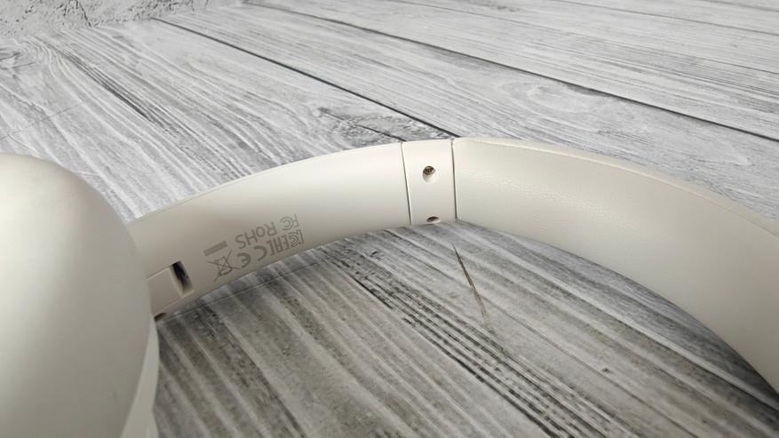 Наушники бывают в черном и белом исполнении. Белый цвет именно белый, не молочный. Чаши наушников достаточно крупные. Исполнение не просто складное, но и амбушюры поворачиваются для удобства ношения на шее. Снаружи на корпусах видим отверстие микрофона. Оголовье массивное, из качественного пластика. Ощущения хлипкости конструкции нет. Сами амбушюры из качественного кожзама. Каналы прописаны на внутренней стороне наушников на ткани, закрывающей решетку динамика.