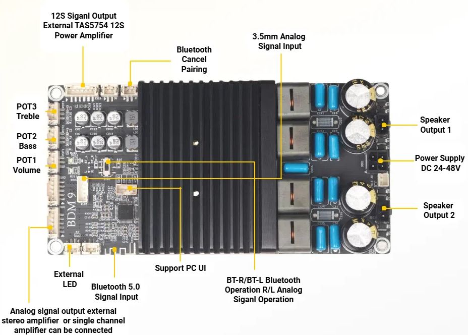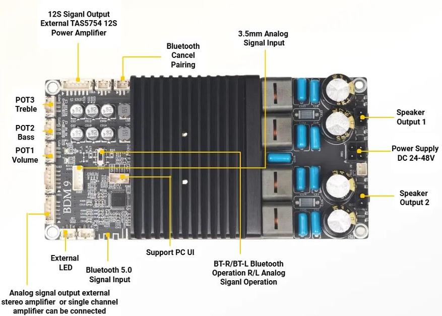 Если мало только линейного входа, есть вариант от того же производителя BDM8 с Bluetooth (на чипе MVSilicon BP1048B2), и более навороченный вариант с DSP и с расширенным списком подключений (в том числе к ПК с ACPWorkbench) и регулировок — BDM9. Усилитель там тот же — чип 3255.