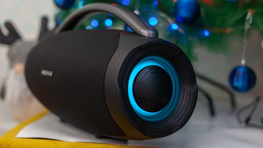 А вот к яркости боковой кольцевой подсветки вокруг пассивных НЧ-динамиков у меня вопросов решительно нет. Она определённо вполне яркая, есть несколько режимов. Я бы, разве что добавил к ним только мягкий красный или оранжевый постоянный свет, чтобы колонку можно было использовать в качестве ночника.