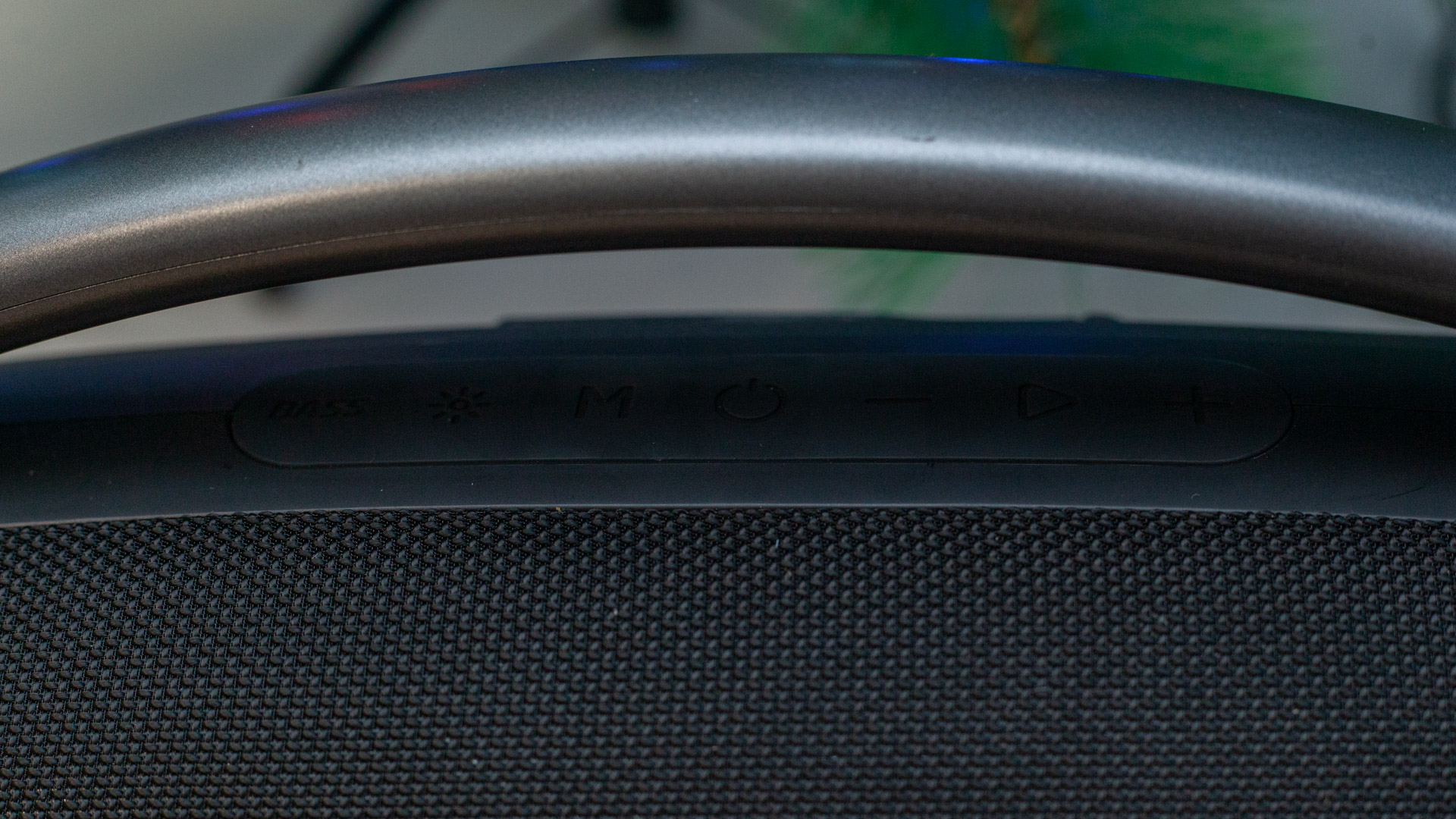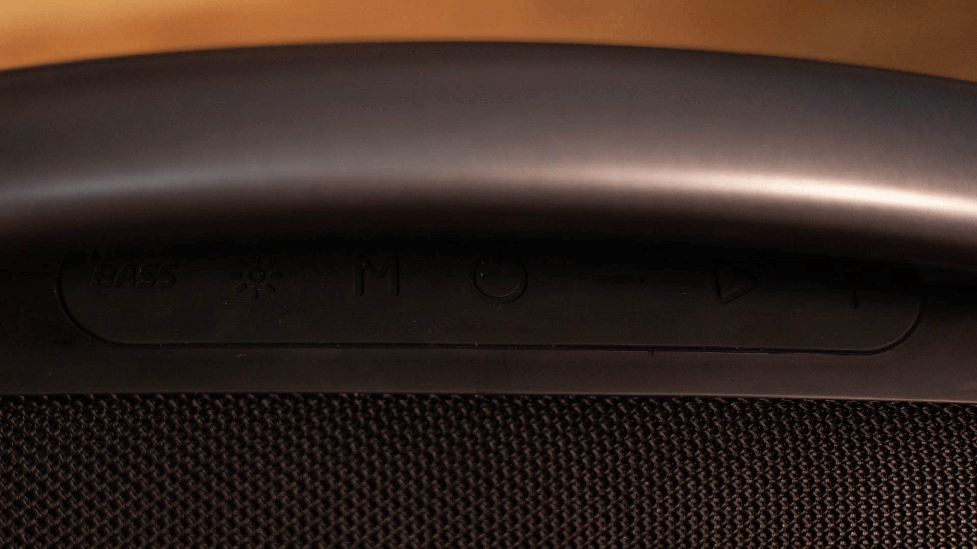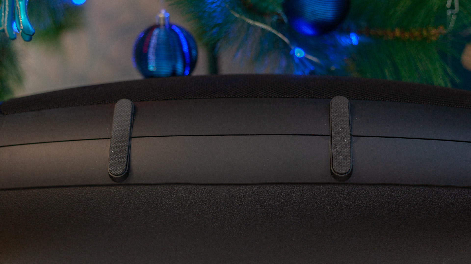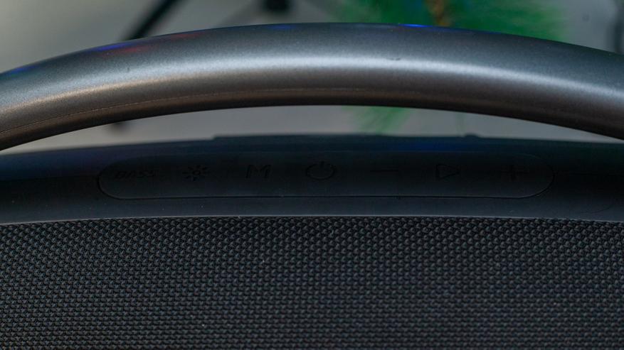 Если в других своих колонках Урал ставили кнопки в верхнюю часть ручки, то в «Тренде» они находятся на площадке под неё я считаю это правильным решением. Да, доступ к кнопкам на ручке определённо был несколько проще. Но их и так-то нечасто приходится нажимать. А, главное, что будет с кнопками, если колонка упадёт на ручку? А тут под ручкой кнопки находятся в безопасности. С их оформлением никаких экспериментов нет, они закатаны под одну сплошную ровную ленту мягкого пластика с прорезями пиктограммами в нужных местах. Кнопки не выпуклые, а наоборот — лента немного прожимается в нужных местах, так что я достаточно легко смог нащупать их вслепую.