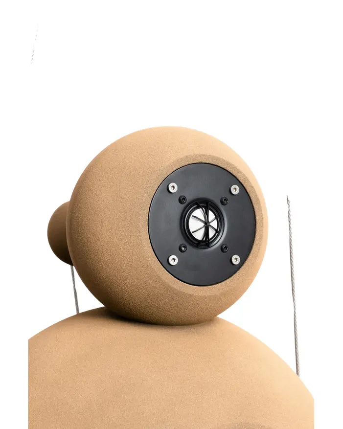 Форма акустической системы также выполняет функциональную задачу. Корпус состоит из нескольких соединенных между собой сферических сегментов. Такая геометрия внутреннего объема спроектирована таким образом, чтобы свести к минимуму эффект стоячих волн — акустическое явление, при котором звуковые волны отражаются от внутренних стенок, создавая неравномерность частотной характеристики. Сферическая форма способствует более чистому и точному воспроизведению звука.