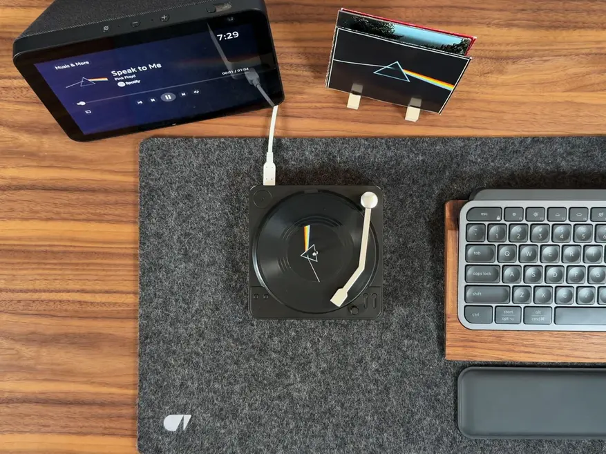 Инженер-программист под псевдонимом AKZ Dev представил устройство Prestodesk Spotify — настольный проигрыватель, который позволяет управлять потоковой музыкой Spotify с помощью миниатюрных виниловых пластинок.