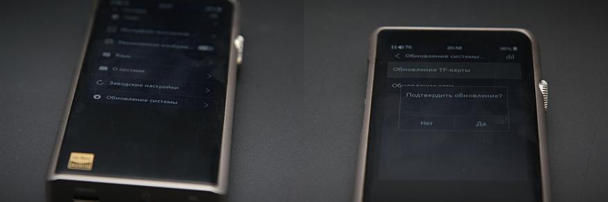 Далее я захожу в пункт «настройки» и выбираю «обновление TF карты». Прошивка мне понравилась, плавная/стабильная. В своё время я ходил с бюджетным Shanling M0, не знаю как сейчас, но в 2018 году разработчики забили на русскоязычный перевод. Над переводом тогда трудились ребята с форума player.ru. Здесь же всё сразу из коробки и в лучшем виде. Обновление версии V3.6 было выпущено 13 марта 2020 года.