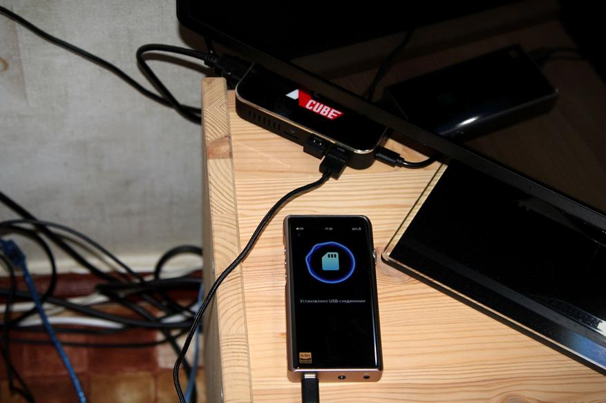 Этот плеер может как USB DAC. А если сказать своими словами, его можно подключить к компьютеру и воспроизвести звук с пк через него (звуковая карта). Вовсе необязательно иметь компьютер или ноутбук, я воспользовался Android ТВ приставкой Ugoos Cube X2. По умолчанию он определяется как отдельный накопитель:
