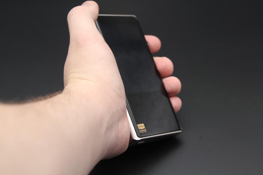 Прямоугольный корпус изготовлен из алюминия и стекла. Дизайн потрясающий, это вам не какой-нибудь подпольный зишан, здесь всё продумано до мелочей! Такое ощущение, что корпус изготовлен из цельного куска алюминия, уж очень удачная получилась конструкция. Я сжимал плеер в руке, пробовал его потрясти… не услышал ни малейшего звука, ни малейшего скрипа. Кнопки не болтаются, всё на своих местах. Покрытие спустя месяц как новое, к нему у меня так же нет никаких вопросов. Ну а если владелец захочет сохранить первозданный вид — я бы посоветовал приобрести кожаный чехол. Качество сборки на высочайшем уровне, создателям огромный респект. Батарея внутри не болтается, видимо удерживается на специальном скотче.