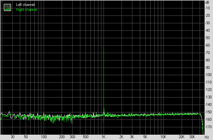 В остальном все просто шикарно: шумовая полка на минус 150 дБ, прекрасный динамический диапазон, интермодуляционные искажения на минус 115 дБ, а гармонические - на минус 111 дБ, что в процентном соотношении составляет 0.0003%.