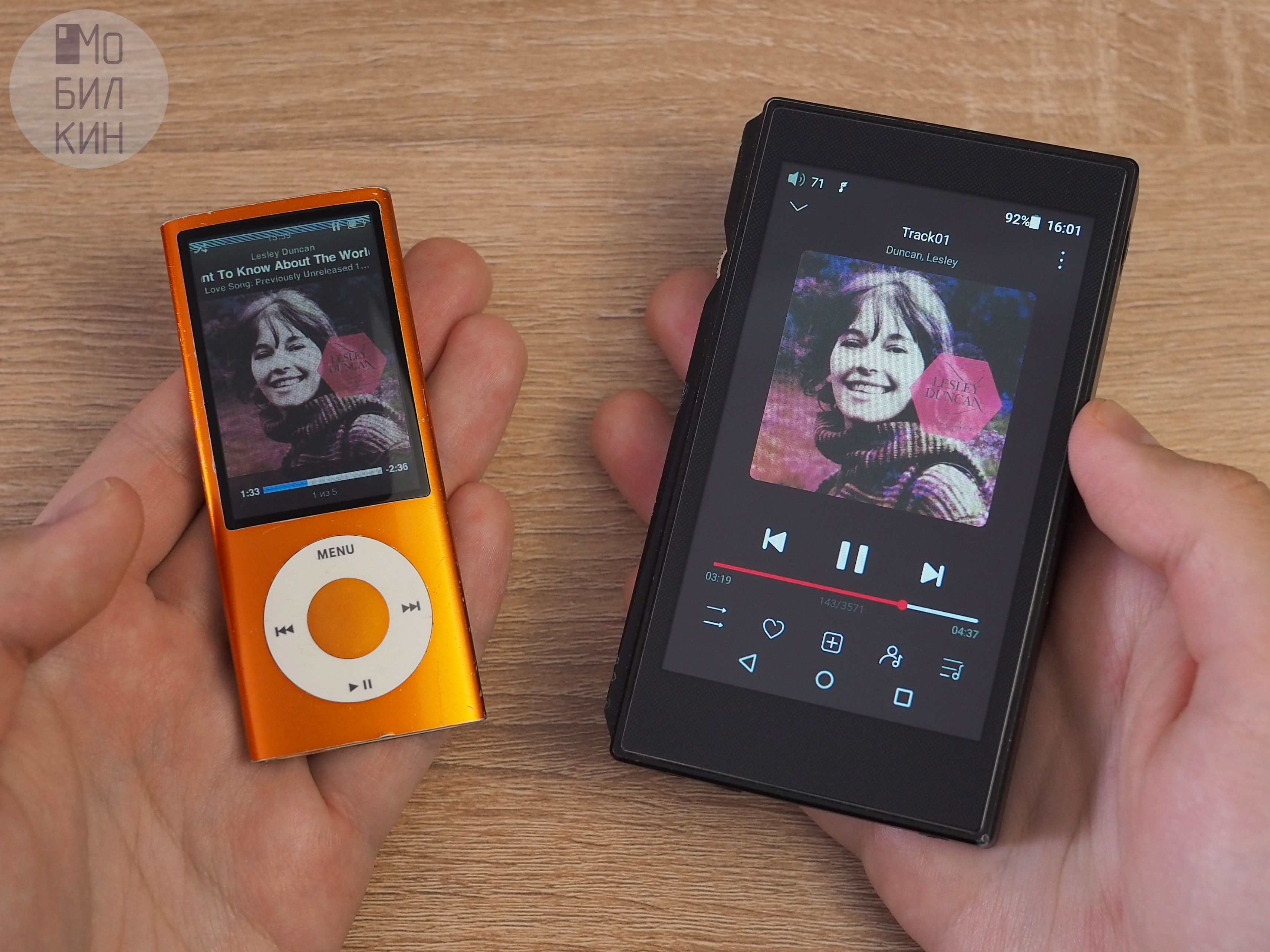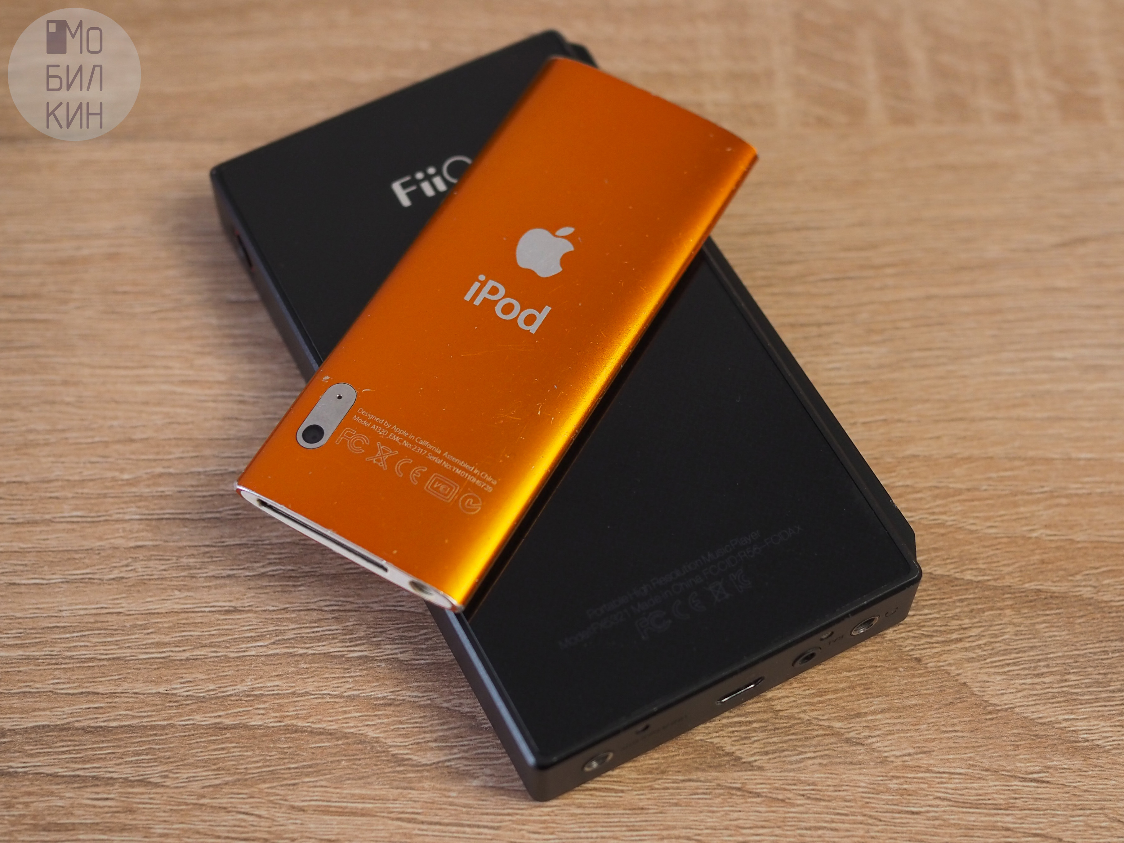 Первое, на что обращаешь внимание при знакомстве с плеером — это то, насколько он маленький (90,7x38,7x6,2 мм) и лёгкий (36,4 грамма). В общем, полностью оправдывает своё название. Этому эффекту способствуют скругления по краям, благодаря которым Айпод кажется тоньше, чем есть на самом деле. Придраться можно разве что к плоским граням, которые при определенном хвате могут впиваться в ладонь. Будь у меня в руках смартфон граммов эдак на 200 — я бы уже ругался. Кстати, для сравнения можете посмотреть, насколько крохотным кажется этот iPod на фоне «кирпича» от FiiO.