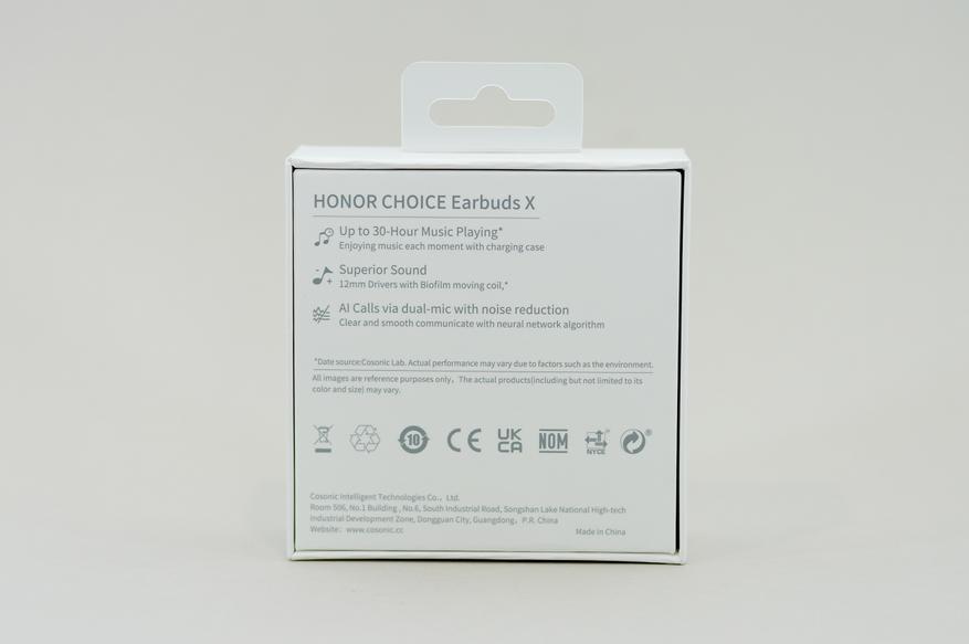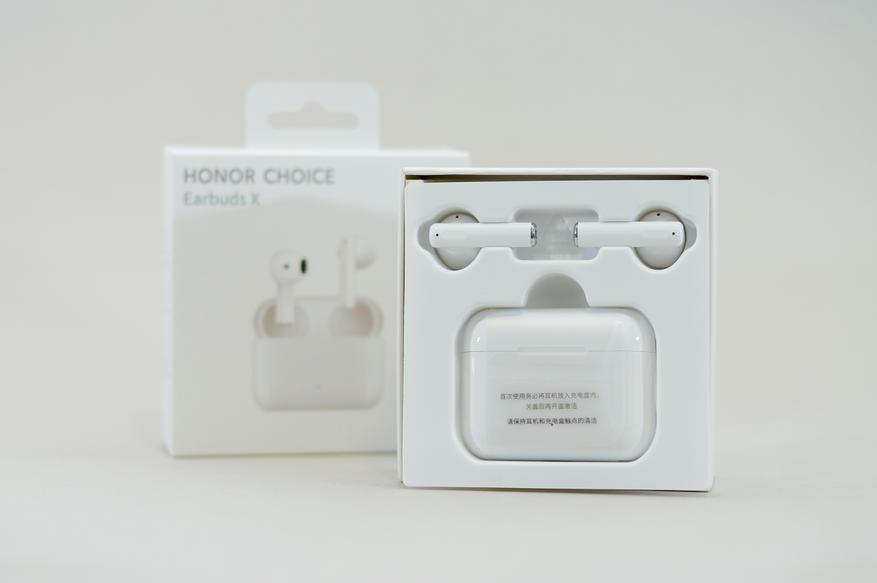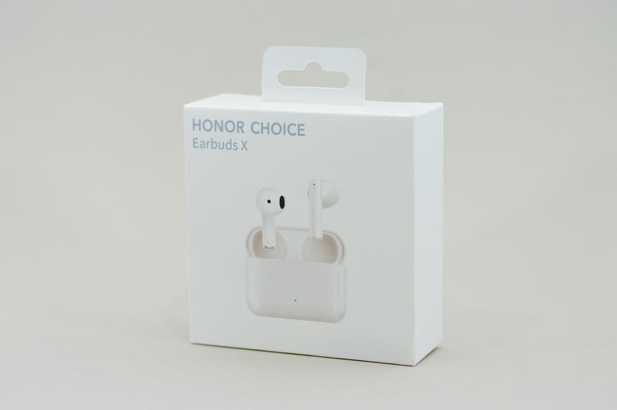 Honor Choice Earbuds X имеет минималистичную и лаконичную упаковку. Упоминаний об истинном производителе (Сosonic) на упаковке нет, зато есть заветное — «Honor Choice». Но если не знать перевода, то можно подумать, что истинное название TWS наушников — Honor Choice Earbuds X.
