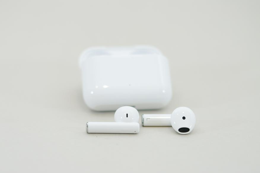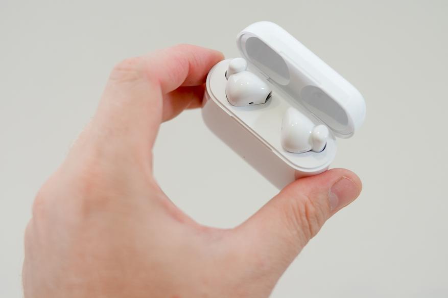 В верхней части звуковода и в основании ножки находятся пара микрофонов. Для зарядки предусмотрены контакты по обе стороны от нижнего микрофона. Посадка вкладышей очень сильно зависит от ушной раковины и наличие басовой составляющей по большей части анатомия.