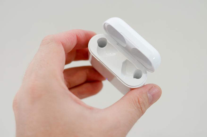 Внутри коробки находятся наушники, кейс, короткий кабель для зарядки и инструкция по эксплуатации.