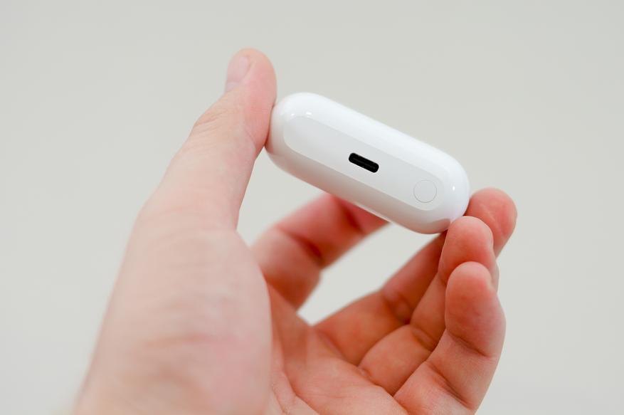 Индикатор работы находится в нижней части лицевой стороны, тогда как кнопка сопряжения и порт для зарядки в нижнем торце. Встроенный аккумулятор на 500mAh позволит близко подойти к отметке 30 часов (с учетом наушников).