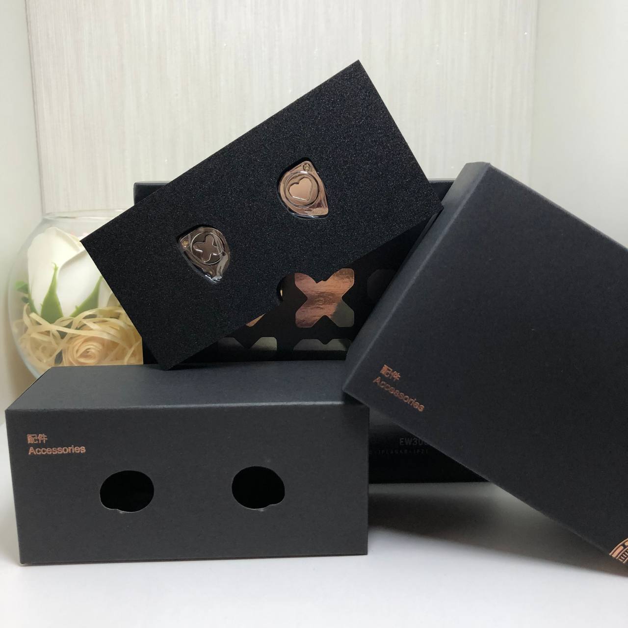 Как всегда, начать обзор я бы хотел с опыта расспаковки и первого впечатления. Что ж, наушники поставляются в коробке, черного цвета. На лицевой части коробки нанесены сердца и буквы «X», означающая слоган наушников «Love X», а на задней части спецификация наушников. Коробка оформлена в минималистичном стиле и привлекает к себе внимание.