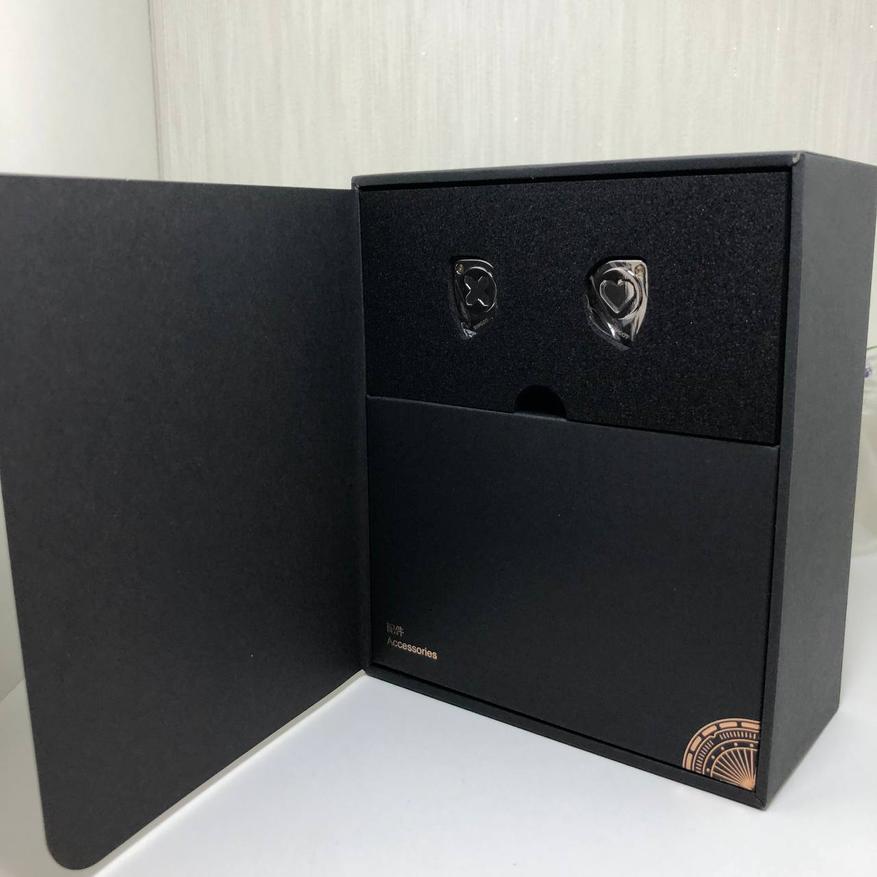 Открыв коробку я увидел листок с нанесенными шелами, а так же Надпись «Love X» золотистого цвета, а за листком находится наушники и коробка с акссесуарами. Так же, снизу коробки находится гарантийный талон