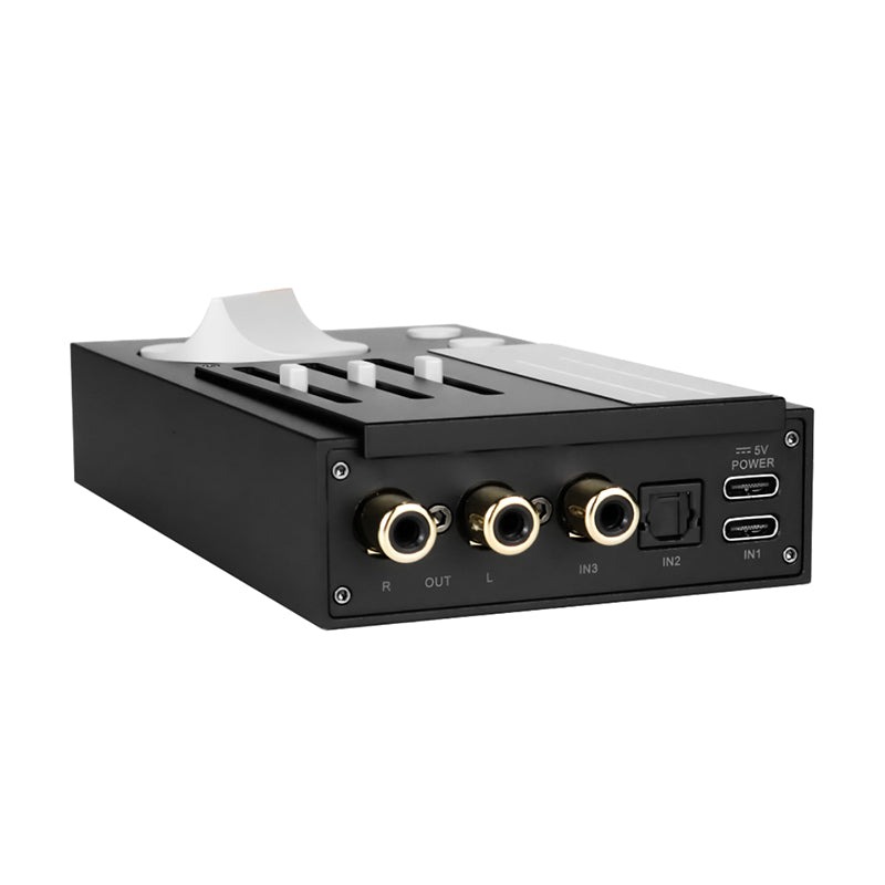 От каких-то серьезных решений аппарат унаследовал USB, оптический и коаксиальный входы, RCA, а также два выхода для наушников на 3.5 и 4.4 мм джек. Причем уровень гармонических искажений на них не превосходит 0.009%, а выходная мощность составляет 120 мВт на 32 Ома нагрузки.