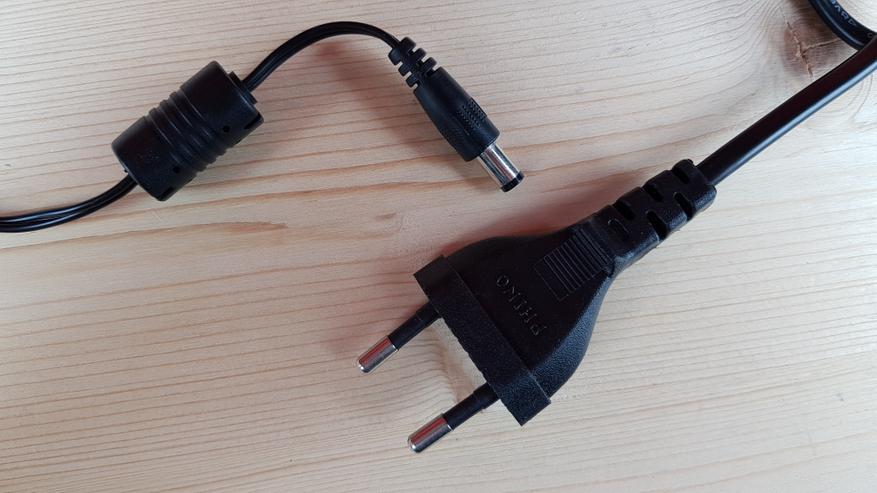 Вилка выполнена сразу на наши розетки, штекер — классический.
