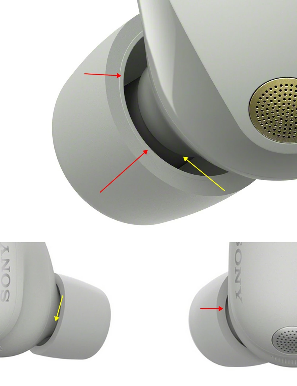 Амбушюры WF-1000XM6 изготовлены из пенополиуретана. В отличие от модели XM5, новая версия лишилась красной силиконовой опорной структуры внутри насадок. Уровень защиты от воды соответствует стандарту IPX4, что обеспечивает устойчивость к брызгам и поту во время физических нагрузок.