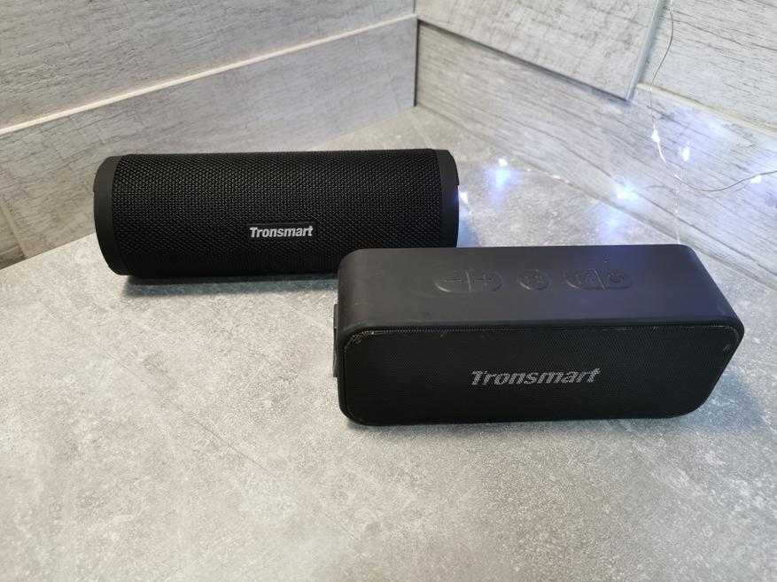 Как я уже писал ранее — элементы управления находятся на задней части колонки. И это не удобно, если девайс просто стоит на столе. Приходится брать Force 2 в руку и переворачивать к себе. Возможно при долгом использовании получится запомнить расположение и пользоваться по тактильной памяти, но мне на неделю это не удалось сделать. Для визуального сравнения выкладываю совместное фото вместе Tronsmart T2 Plus.