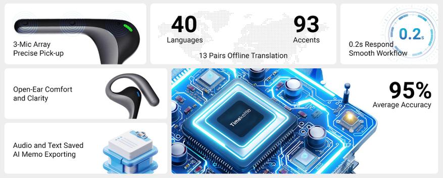 Наушники оснащены тремя встроенными микрофонами и имеют время отклика всего 0,2 секунды, что дает возможность поддерживать гладкие и непрерывные беседы на протяжении долгого времени, как в индивидуальном, так и в групповом формате. Система перевода работает с короткими сегментами, что минимизирует задержку между оригинальной и переводимой речью. W4 Pro поддерживают двухсторонний перевод, создавая более естественные условия для общения.
