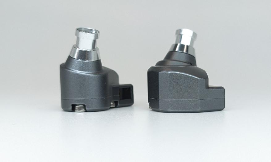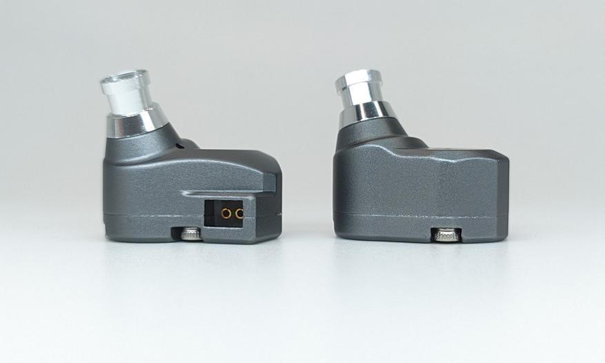 Полностью металлические корпуса. Компенсационное отверстие рядом со звуководом. Вентиляционное отверстие на фейсплейтах. Утопленные разъемы 2 pin для подключения кабеля. Такое подключение кабеля я считаю самым надежным. Покрытие корпусов похоже на анодирование, а не на покраску. Опционально доступны также и в черном цвете.