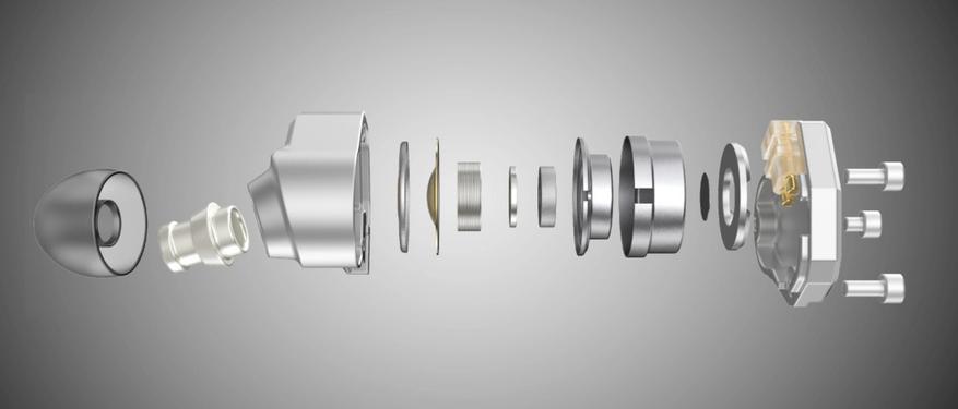 За звук отвечает 10-мм динамический драйвер с композитной диафрагмой из PU и LCP и двойной полостью.
