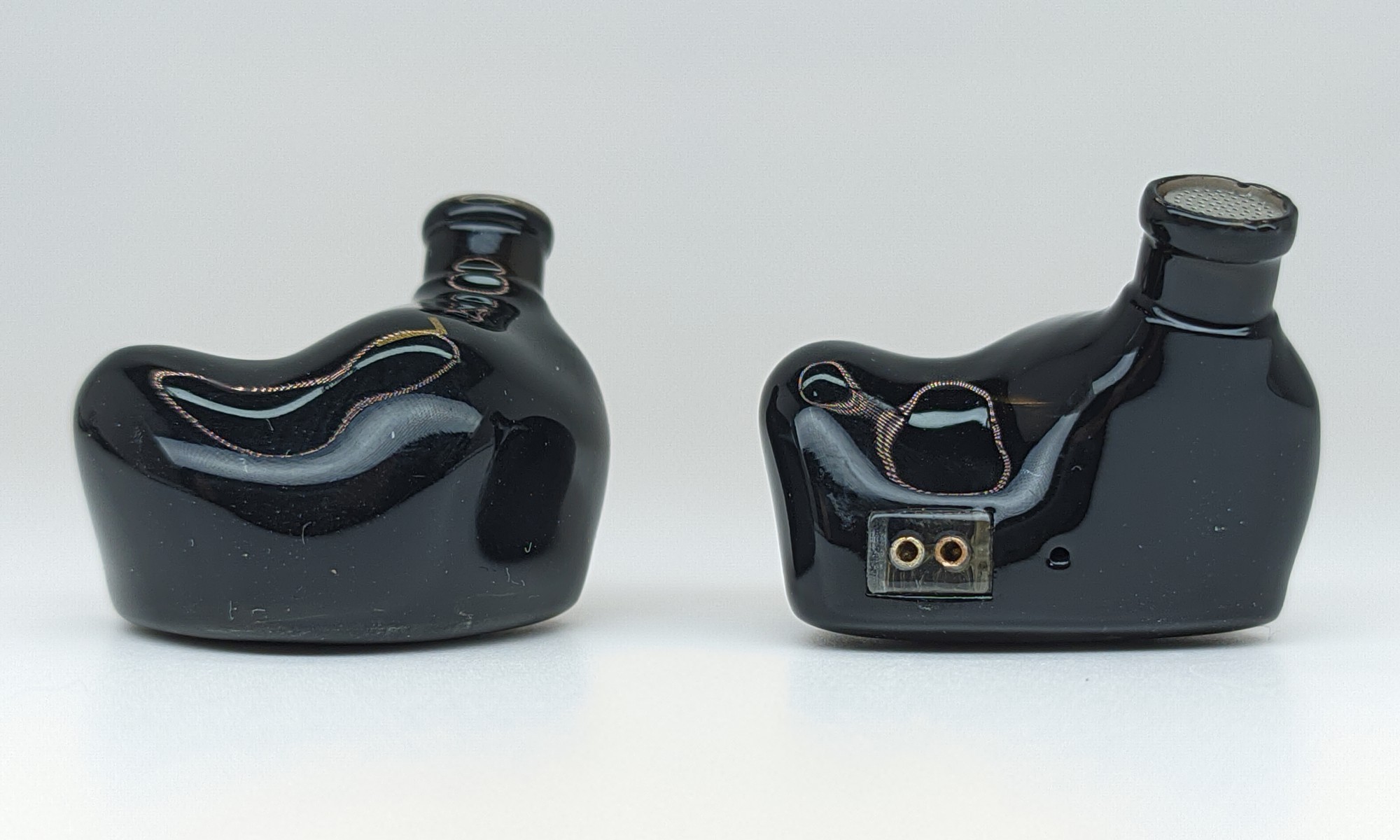 Полностью пластиковые корпуса. Акриловые фейсплейты с текстурным рисунком и логотипами компании. 2-pin разъемы подключения кабеля вровень с корпусом. Рядом с разъемами расположилось компенсационное отверстие.