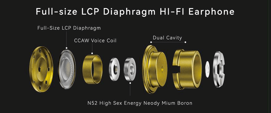 За звук отвечает один динамический драйвер с 10-миллиметровой диафрагмой нового поколения из жидкокристаллического полимера (LCP) с точно контролируемой толщиной менее 5 мкм для точной передачи высоких частот и низкого уровня искажений. Также у нового драйвера есть система из двух магнитов и двойная полость, что позволяет лучше контролировать низкие частоты.