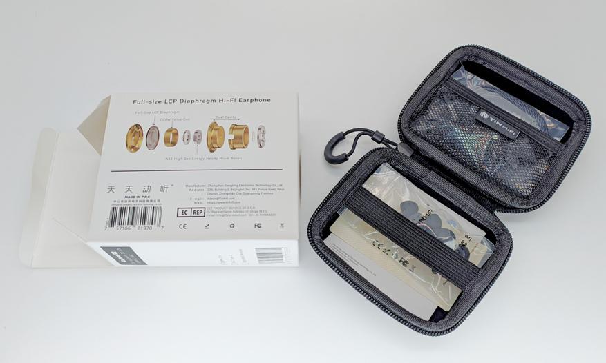 Кейс к C3 MK2 положили просто огромный. Помимо наушников в него можно закинуть много всякого добра. Предусмотрен оттопыренный сетчатый карман на одной чаше и резиновая лента для удержания этого добра на другой чаше. Несмотря на геометрию, кейс чувствуется довольно твердым и плотным, и крышки не сильно прогибаются под давлением. Хороший кейс. Есть даже полукольцо на застежке как раз под палец, чтобы было удобно крутить кейс в такт музыке.