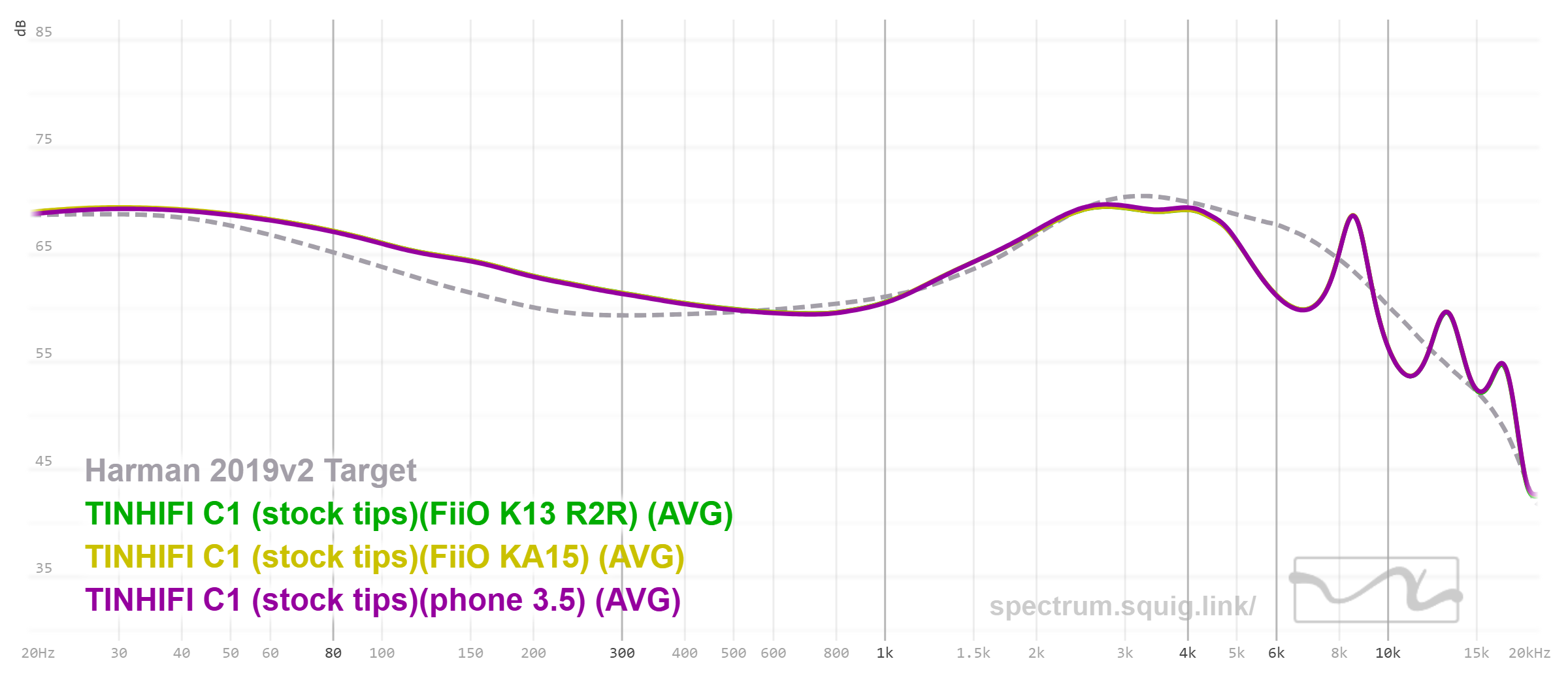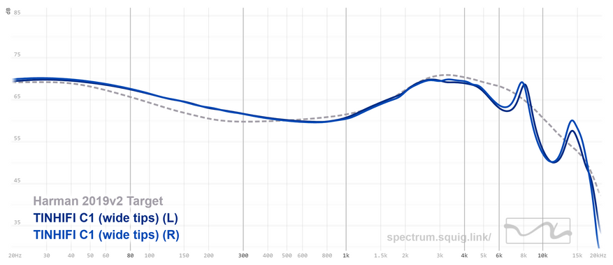 По профилю звучания это очень хорошо настроенная классическая V-шка. Конечно, никакой классики на самом деле в IEMs нет, формат это, можно сказать, относительно недавний, а «классическим» их звучание я назвал только потому, что оно почти идеально вписывается в рекомендованную кривую для внутриканальных наушников от Harman версии 2019 года.