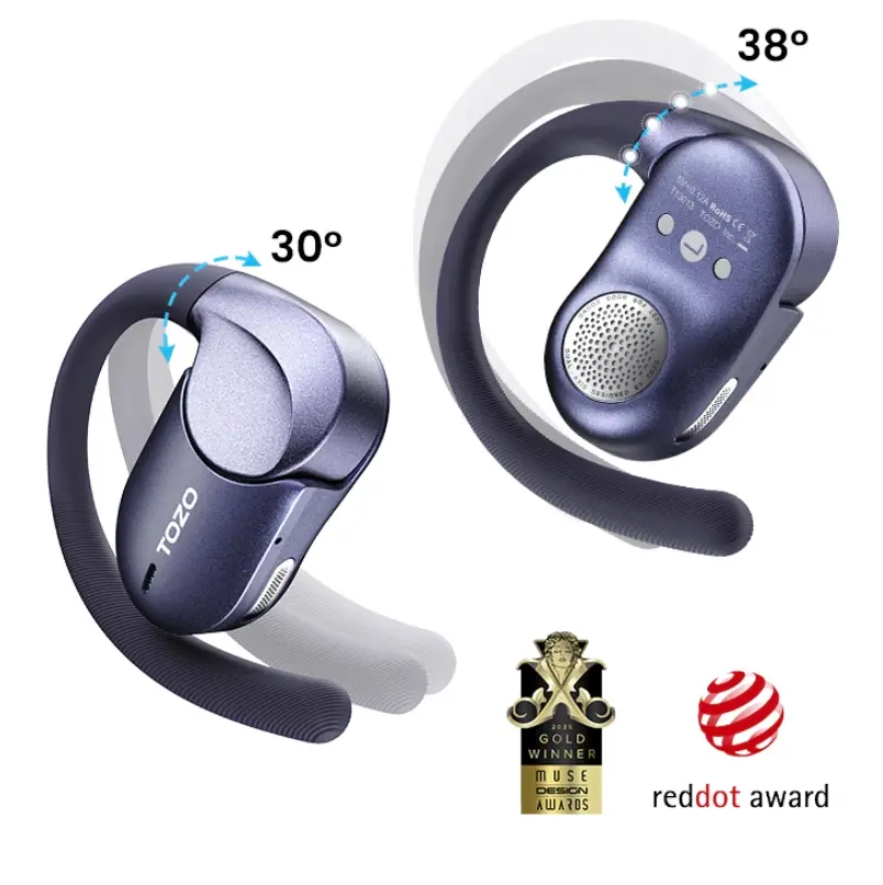 TOZO предлагает Open X2 Pro в двух цветовых вариантах: темно-фиолетовом и сине-фиолетовом. Автономность наушников составляет до 9 часов непрерывного воспроизведения от одного заряда встроенного аккумулятора. Зарядный кейс продлевает общее время работы до 36 часов.
