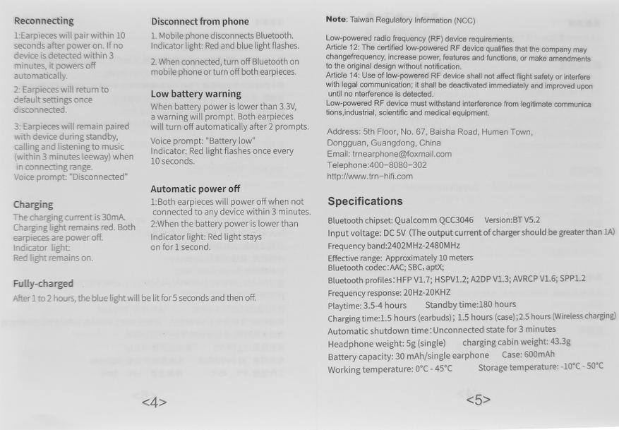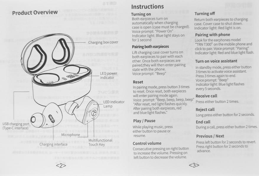 Комплект поставки TRN T300 состоит из наушников, зарядного кейса, кабеля, трёх пар силиконовых насадок, инструкции и гарантийного талона.