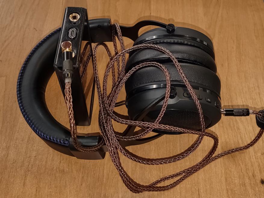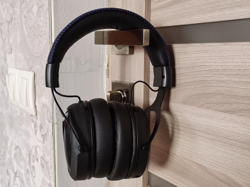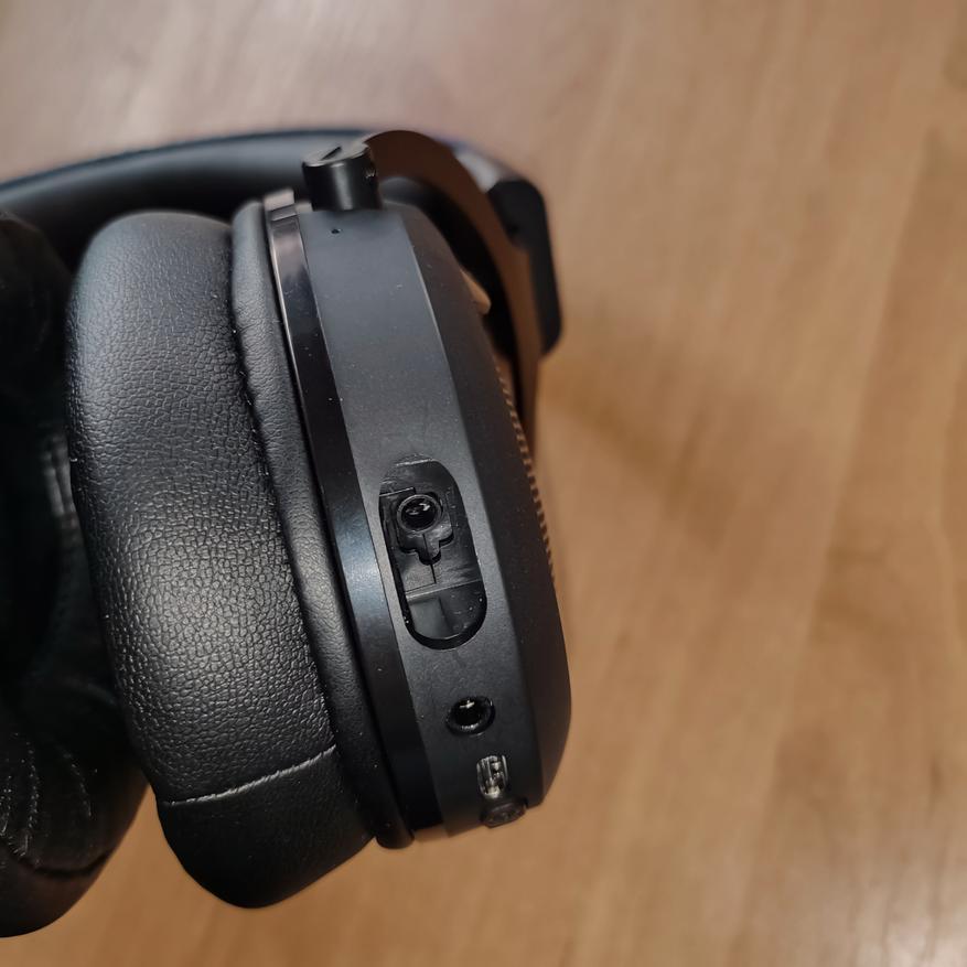 Tronsmart Shadow — это полноразмерная гарнитура с амбушюрами которые полностью обхватывают уши и позволяют длительное время использовать наушники без какого либо серьёзного дискомфорта. Жесткость оголовья оптимальная. Но к эргономике сабжа у меня все же есть одно замечание, касается оно аудиовхода расположенного строго вниз. Вставленный в такой разъём длинный прямой штекер, иногда может цепляться за воротник. Поэтому я и использую сторонний кабель, у которого штекер угловой.