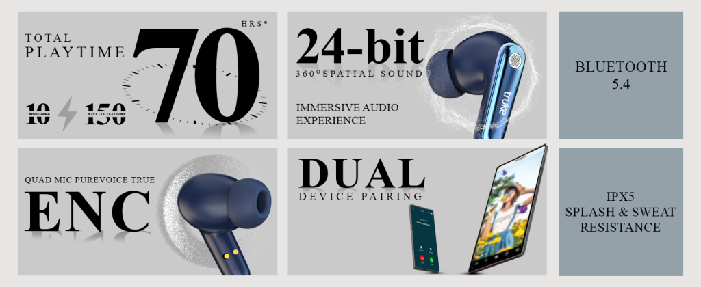 Truke представила новые TWS-наушники Mega 10 с автономностью до 70 часов