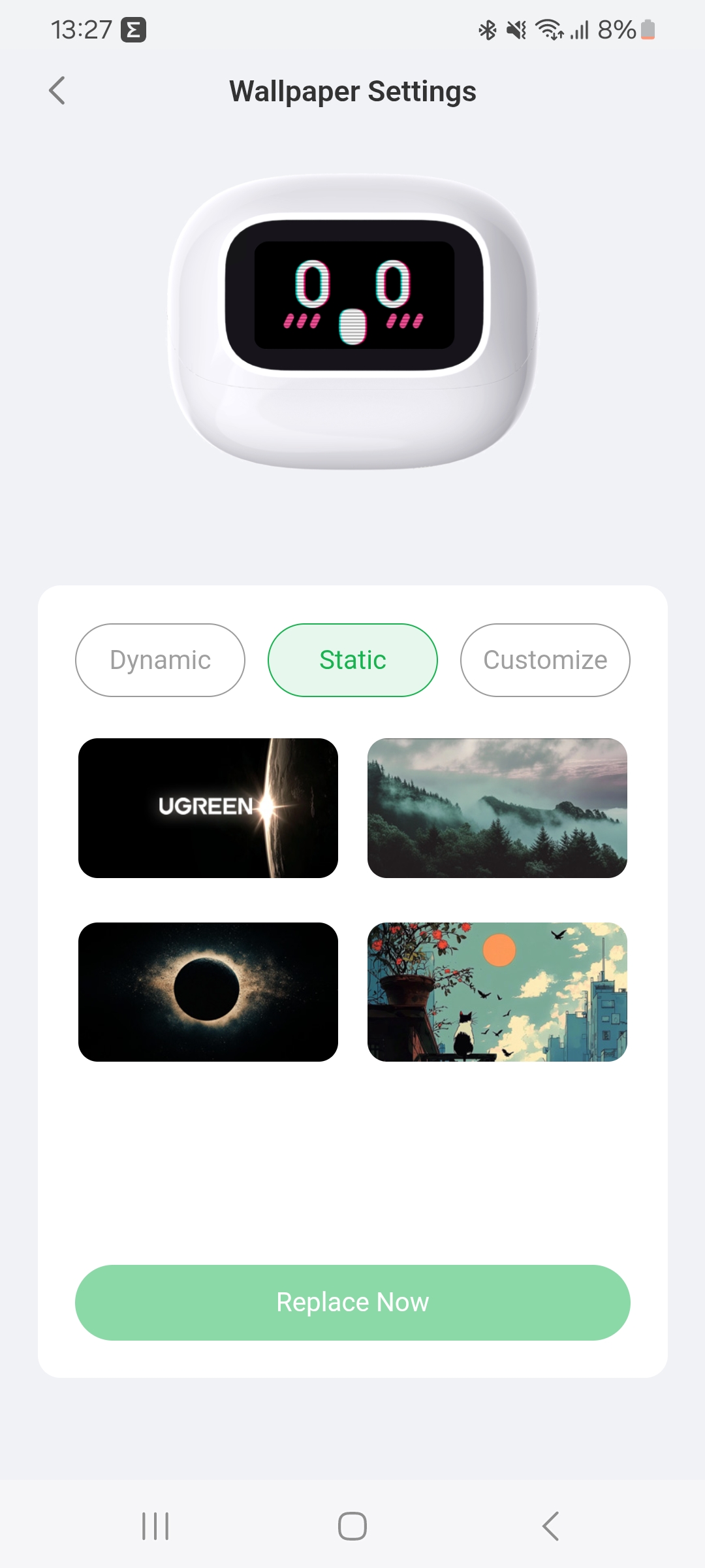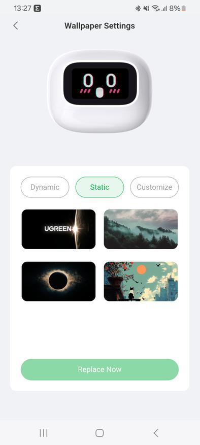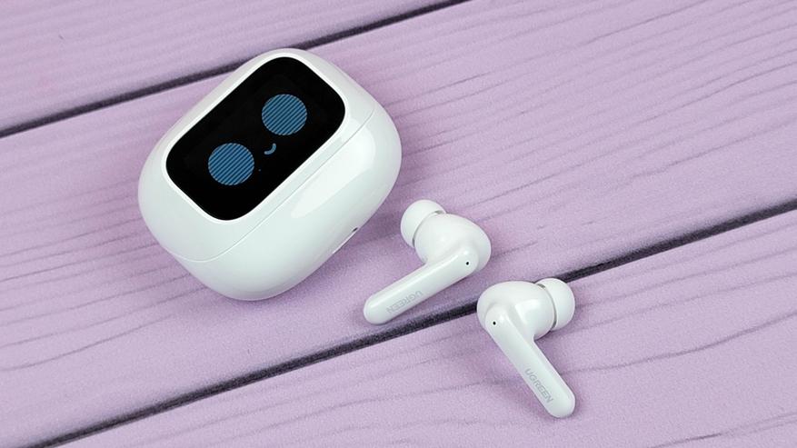 Ugreen интересно обыграли дизайн, добавив гаджету некой эмоциональности. Дисплей не только несет какую-то полезную информацию, помогает в настройке и управлении, но и просто развлекает. Предустановлено несколько анимированных шаблонов, на которых отображены различные эмоции. Наушники вам улыбаются, подмигивают и вообще пытаются быть дружелюбными.
