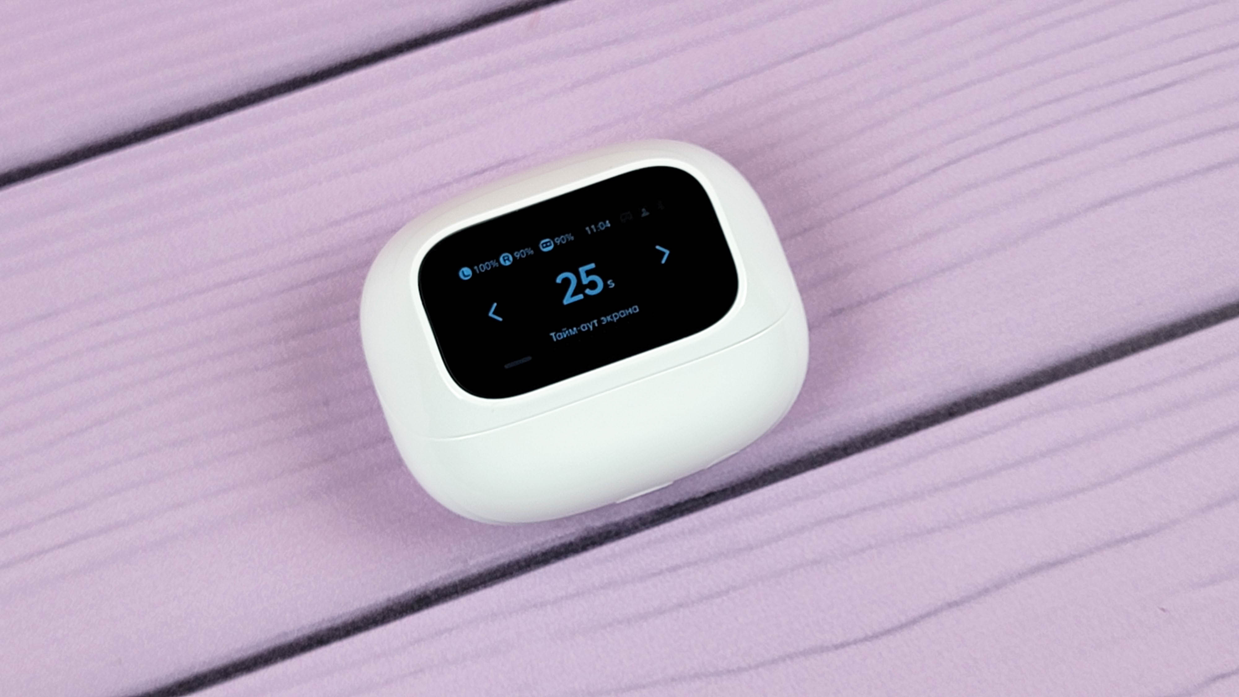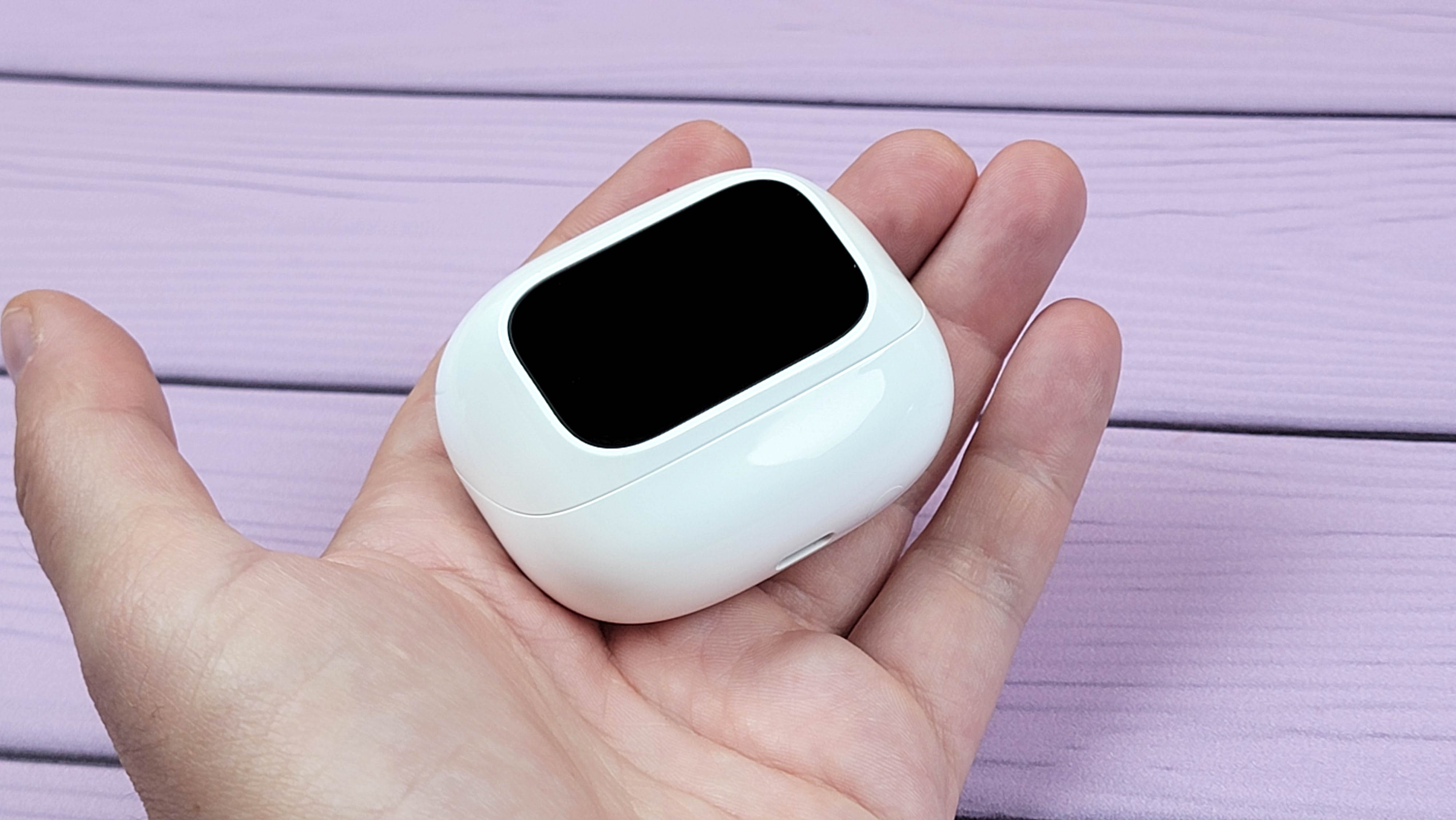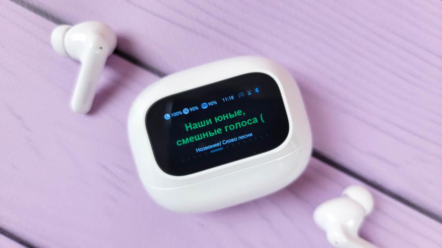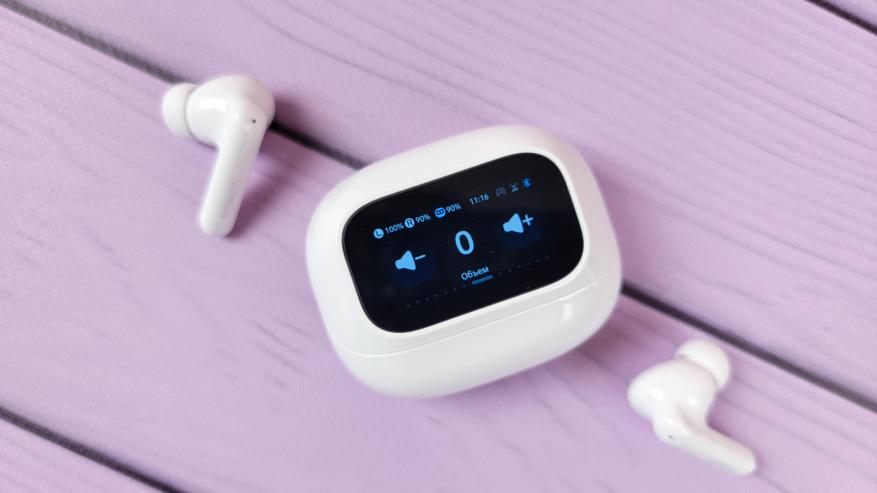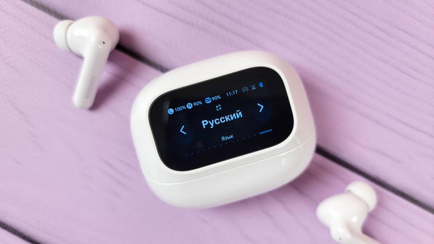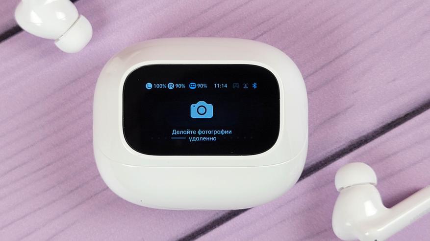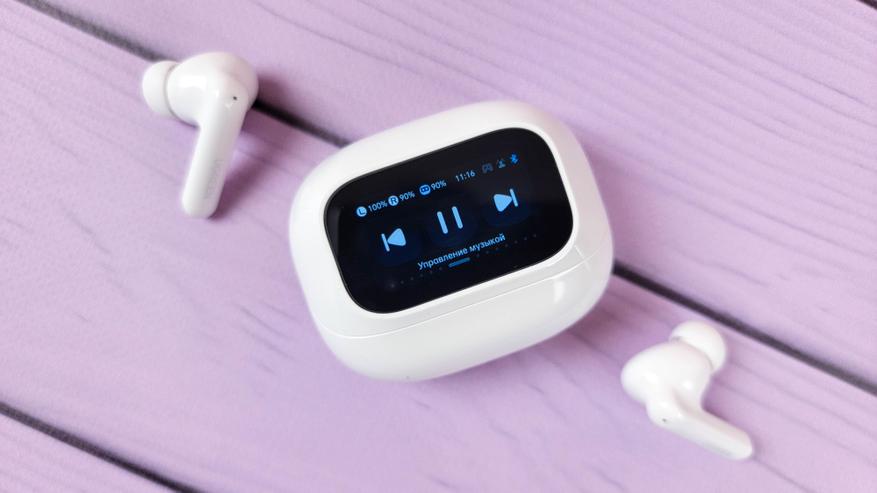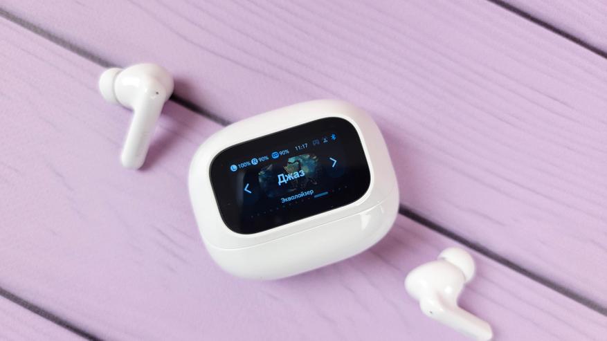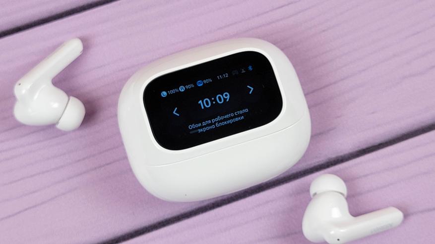 Экран встроен в откидную часть и включается автоматически при открытии\закрытии. Также можно включить экран нажатием кнопки. В остальном это обычный кейс, где хранятся и подзаряжаются наушники. Сидят надежно, если потрясти не тарахтят.