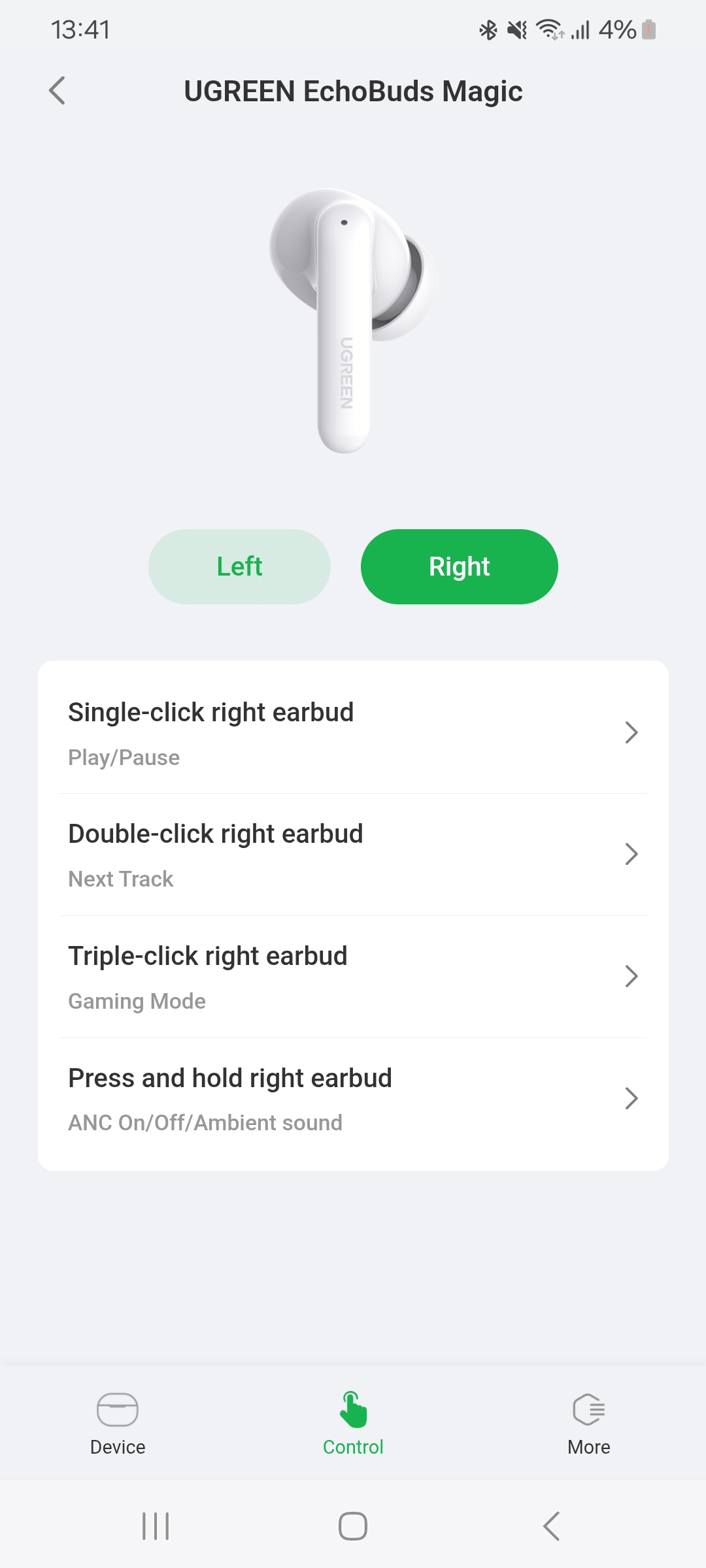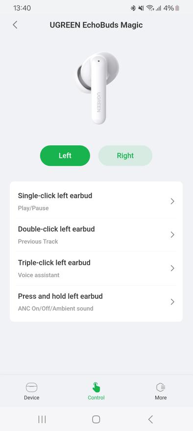 В настройках можно переназначить управление. Всего на каждый наушник поддерживается до 4 действий: одинарное, двойное и тройное касание, а также длительное удержание.