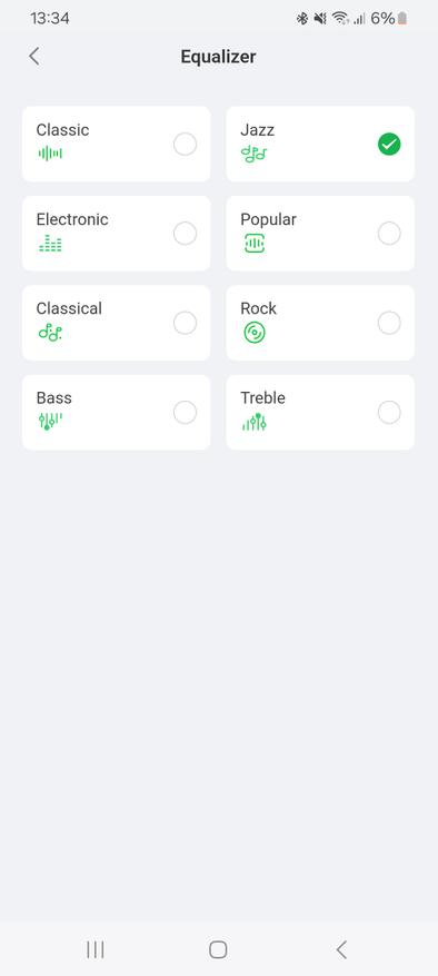 Теперь посмотрим, что может кейс. Во-первых, он показывает свой остаточный заряд и заряд наушников. Также на экран выводится информация о том, в каком режиме работают сейчас наушники, статус подключения и текущее время. Сразу хочу отметить, что многие действия можно осуществить и через приложение на своем смартфоне, но на кейсе это как-то удобней и быстрей. Те же настройки эквалайзера вынесены в отдельный раздел и вы можете быстро переключать их в зависимости от настроения и типа прослушиваемой музыки.