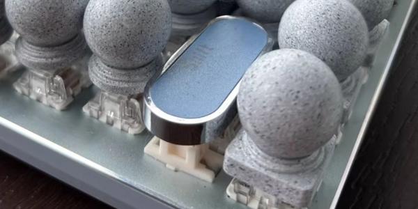 Зарядный кейс имеет эргономичную плоскую форму со скруглёнными углами. В качестве материала изготовления используется тёмно-синий глянцевый пластик. Спереди кейса находится трёхдиодный индикатор уровня заряда, а сзади кнопка сброса. Снизу кейса можно обнаружить разъем питания type-c, а сверху логотип производителя. Крышка подпружинена — при частичном ручном открытии (приблизительно 20°), далее она открывается автоматически. Крышку в закрытом положении удерживают магниты. Магниты так же удерживают и наушники в нишах. Качество сборки кейса отличное — все плотно подогнано и при сдавливании ничего не скрипит и не люфтит.