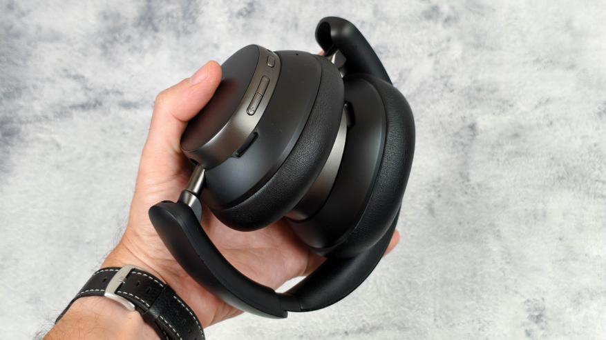 Управление расположено на правой чаше: кнопки регулировки громкости и включения удобно нажимать большим пальцем, а кнопку шумоподавления — указательным.