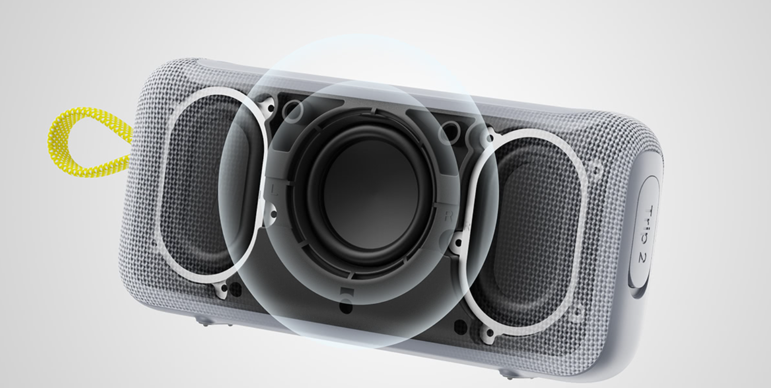 Trip 2 настолько удобна в использовании, что можно её применить буквально везде. Можно взять с собой в путешествия и использовать как внешние колонки при просмотре фильмов в отеле, поставив её просто на стол. А можно положить в карман и отправиться в поход или на велопрогулку. Также её всегда можно прицепить карабином за нейлоновую петлю.