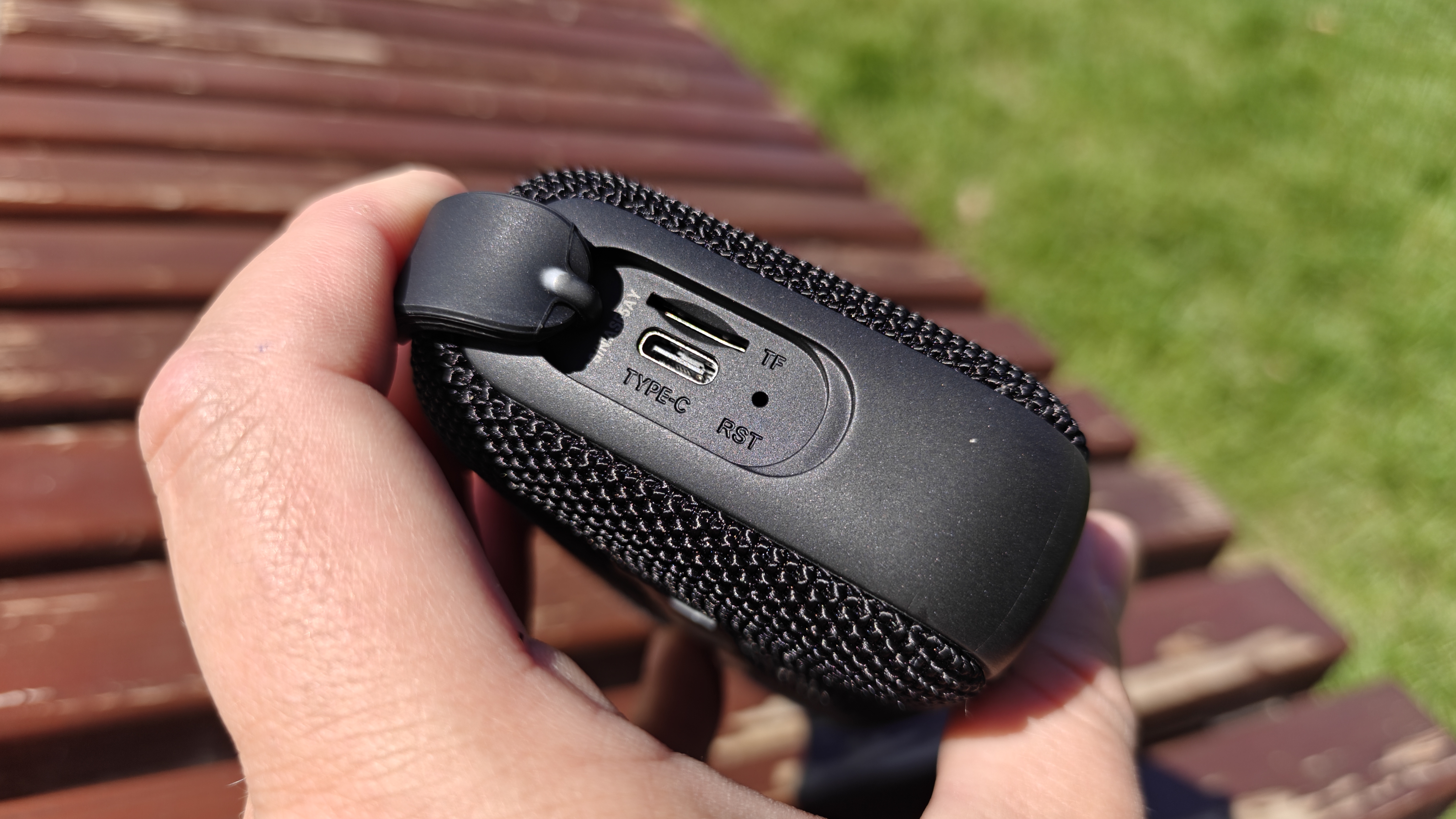 Открываем резиновую заглушку, она сидит довольно плотно. Под ней найдем разъем Type-C для зарядки аккумулятора, слот для установки microSD карты и утопленную в корпус кнопку перезагрузки.