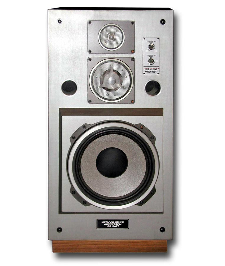 Чем же были так необычны эти колонки? На них впервые серийно применили металлические диффузоры у динамиков. Причем для басовика это была не штамповка, а гальванопластика из никеля по сложной технологии осаждения паров металла на пенополиуретановую форму, с последующим ее удалением выжиганием. Что-то похожее военные заводы делали для значков из ситалла. Среднечастотный динамик был купольный, мембрана у него и у высокочастотного динамика были из алюминиевых пленок с электрохимическим оксидированием. Такие материалы обеспечивали высокую стабильность, прочность и низкий вес. Все три динамика полностью производились на военном предприятии.