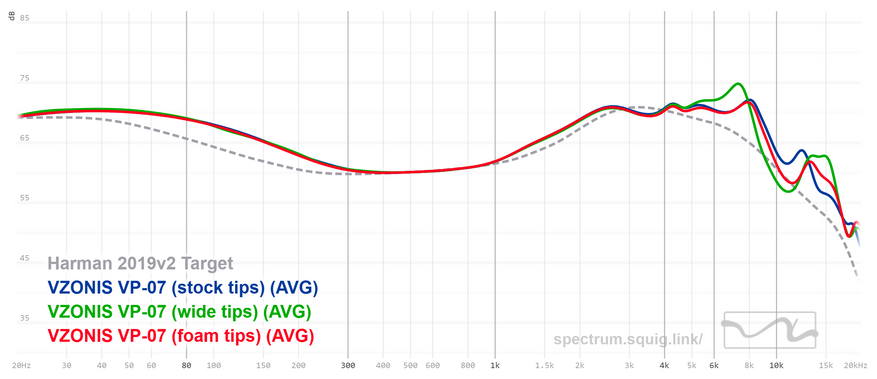 Наушники и правда строят свою атмосферу не только по достаточно объемному звучанию, но и за счет своего звукового профиля. Они создают в некоторой степени концертную или клубную атмосферу, когда бас грохочет, а высокие звенят. В хорошем смысле. При этом VP-07 заметно реагируют на смену насадок, и звонкости высоким частотам даже можно добавить, если выбрать не те насадки. Это слышно при смене насадок, и это же показывают замеры. Правда, на замеры не стоит особо ориентироваться, ведь в реальном использовании результаты у каждого из-за собственной анатомии могут отличаться.