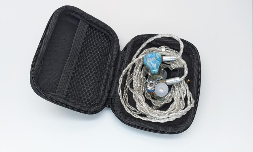 В комплекте приятным бонусом идет неплохой кейс. Крышка немного прогибается, но все же кейс чувствуется хорошо жестким. На молнии есть пылезащита, а внутри кармашек для мелочей. ЦАП в кейс вместе с наушниками положить не получится. Разве что самый простой и маленький, у которого все разъемы сразу на кабеле. Но вообще места едва хватает для толстого кабеля и самих довольно немаленьких наушников.
