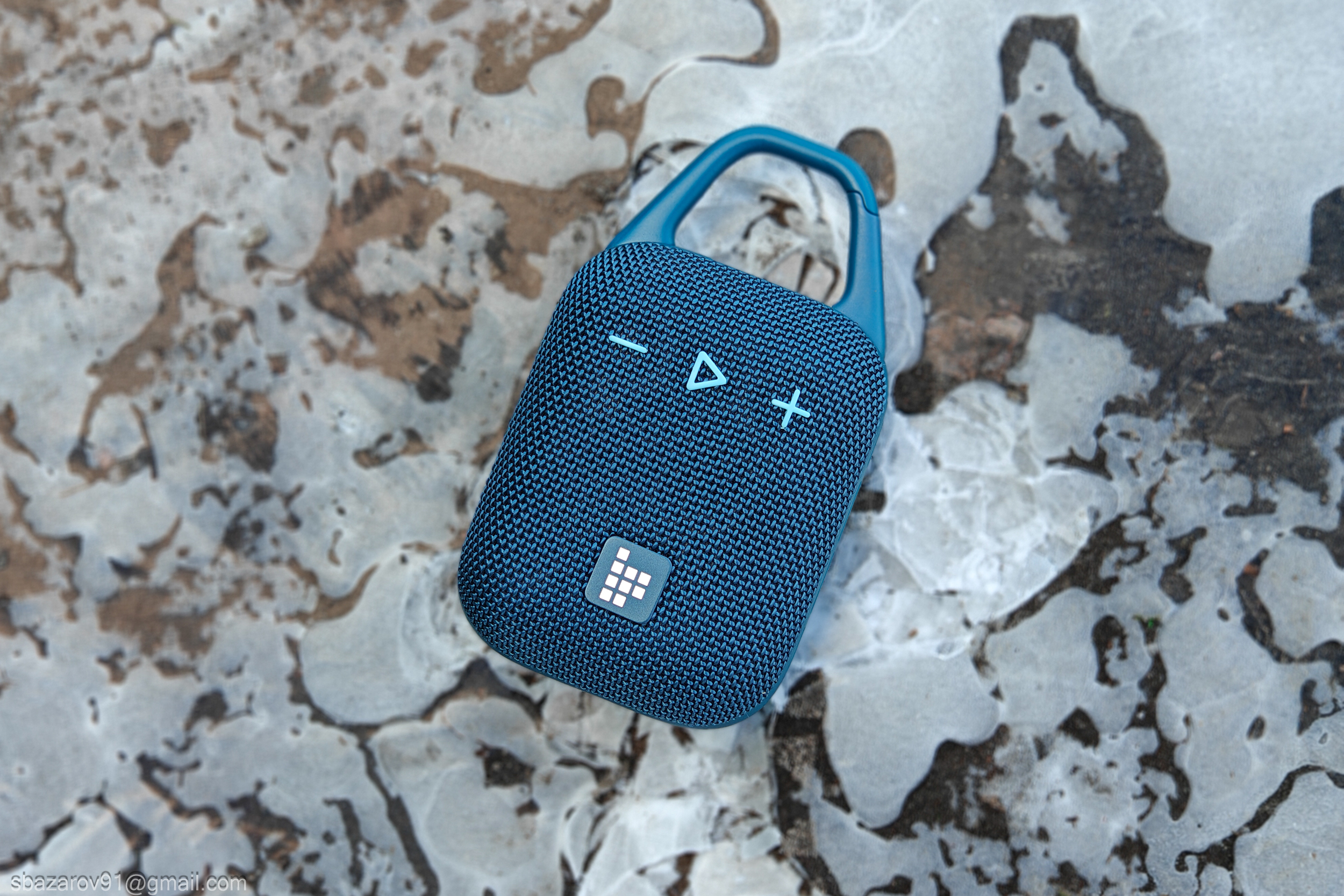 Если при первом взгляде у вас возникнет чувство дежавю, то оно вас не подводит. В данном форм-факторе только ленивый не выпустил свой вариант портативной колонки с карабином. Такой формат позволяет использовать колонку в путешествиях, зацепив её за лямку рюкзака или подвесив за ветку на дерево.