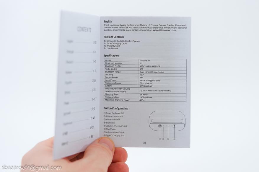 Обычно, наличие влагозащиты в колонках обусловлено различными резиновыми заглушками. В Tronsmart Mirtune H1 Type-C разъем открытого типа, а заявленная степень защиты довольно таки приличная IPX7 (если что, это полноценное погружение на глубину 1 метр в течении 30 минут). Вероятнее всего здесь установлен влагозащищенный Type-C, что для такой ценовой категории обычно не используется.