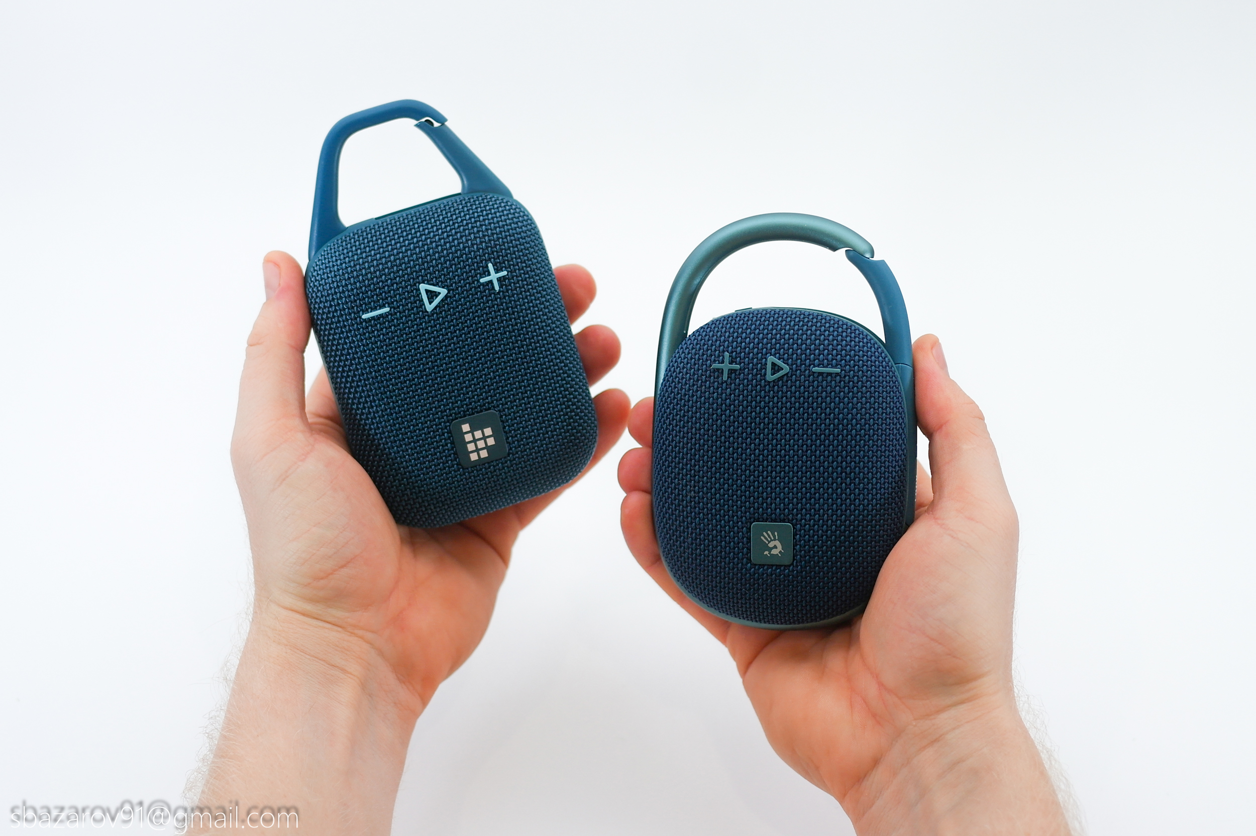 Основное отличие у подобных колонок заключается в форме карабина, он может быть, как круглым, так и в виде трапеции. В прошлом обзоре я рассказывал о колонке A4Tech Bloody S5 Lock, которая очень схожа с обозреваемым сабжем — Tronsmart H1. При этом в качестве прообраза для обеих колонок использовалась колонка JBL Clip 4, предлагая широкий выбор расцветок, тогда как ТТХ практически оставались идентичны.